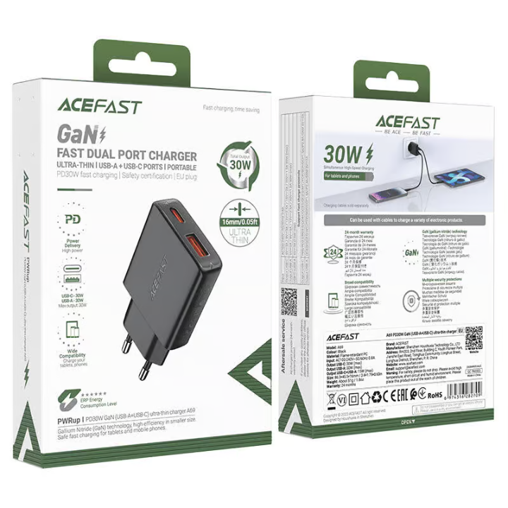 - Brand & Model: Acefast A69 PD30W GaN Charger