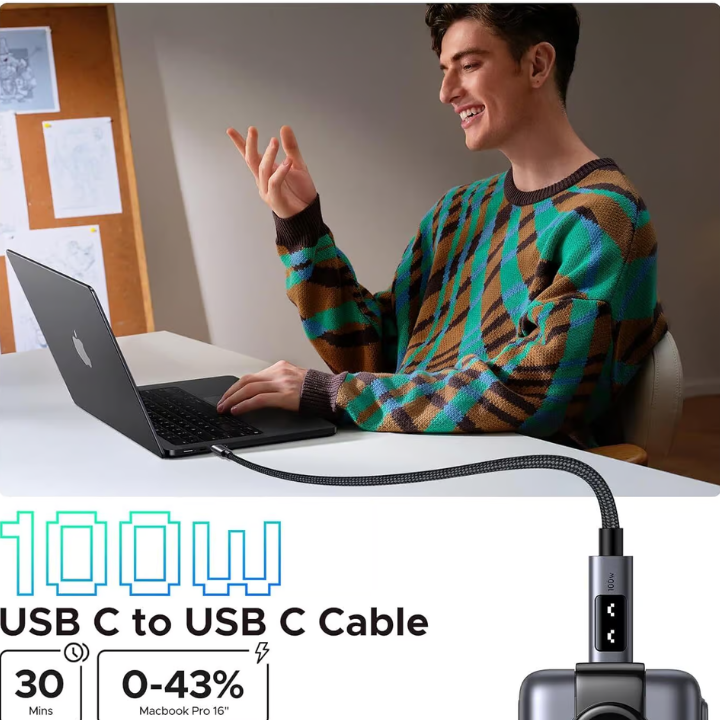 - Rapid Charging & Sync: Delivering up to 20V/5A output, UGREEN 100W USB C Charger Cable charges your devices at amazing speeds, fast fuel Macbook Pro 16” up to 42% in just 30mins. Also supports transferring files at 480Mbps speed, 1G files can be synced within the 30s