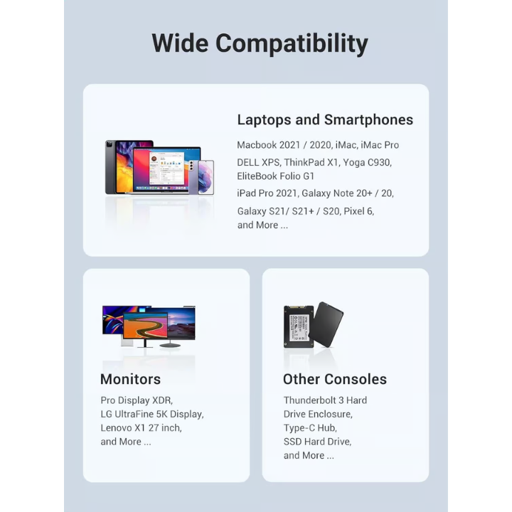 - WIDE DEVICE COMPATIBILITY – Works seamlessly with a range of devices, including MacBook Pro, Mac Mini M1, external SSDs, eGPUs, Dell laptops, and more, ensuring versatile use.