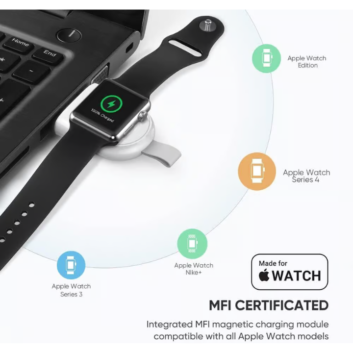 - CABLE-FREE CHARGING – Eliminate the hassle of cables. Simply plug into any USB port and enjoy seamless wireless charging for your Apple Watch.