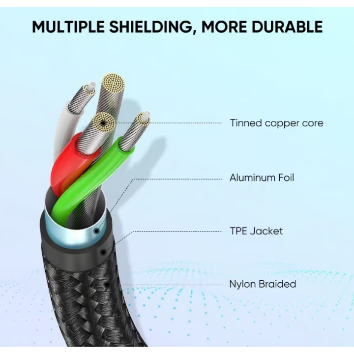- Durable Design: Reinforced tail with a 10mm protective end withstands over 5000 bends, and a thickened PVC jacket prevents kinking for long-lasting use.