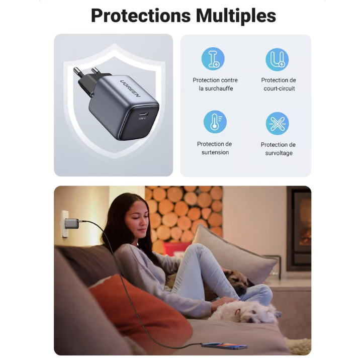 Ensuring the safety of your devices is a top priority, and the Ugreen CD318 excels in this aspect. With protection against over-voltage, over-current, over-temperature, and short circuit, this charger guarantees a safe and stable charging experience. The input specifications (Input: 100-240V~50/60Hz 500mA Max) further emphasize its commitment to safety.