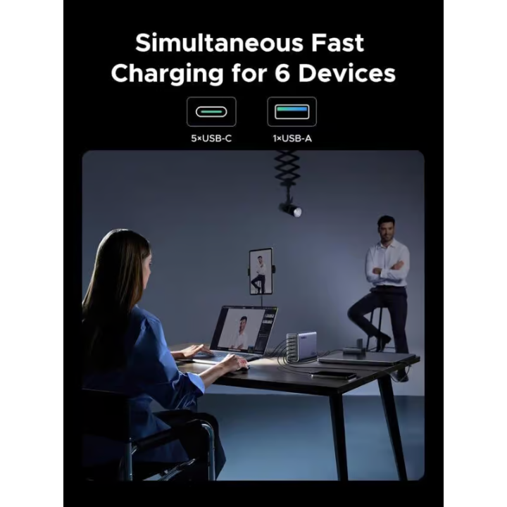 - Port Configuration: 6 ports total, consisting of 5 x USB-C ports and 1 x USB-A port.