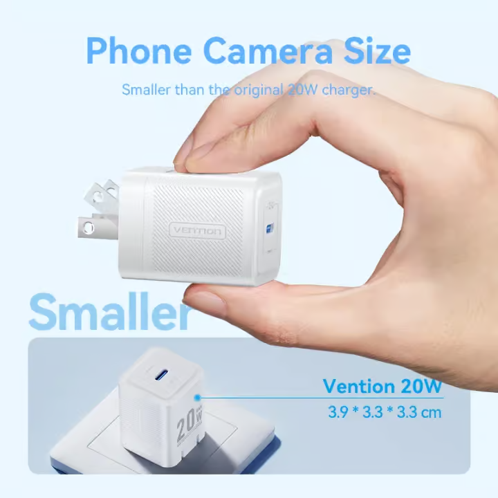 The Vention 20W PD3.0/QC3.0 GaN Fast Charger is a powerful and compact charging solution, designed for ultra-fast and safe charging. With advanced GaN technology, it provides higher efficiency, lower heat, and a smaller size, making it perfect for home, office, and travel use.