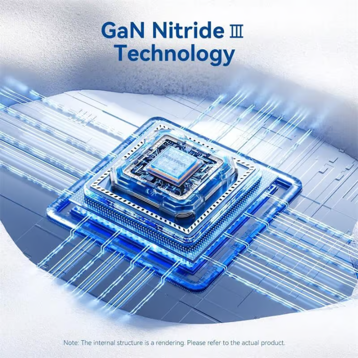 GaN III (Gallium Nitride) technology enhances power efficiency, reduces heat, and allows for a more compact design.