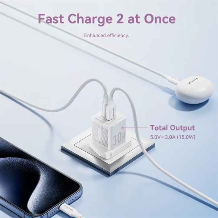 Equipped with dual ports (USB-C & USB-A), the VENTION 30W Charger allows you to charge two devices simultaneously without compromising speed. The USB-C port supports 30W Power Delivery (PD), making it perfect for fast-charging iPhones, Android devices, tablets, and even gaming consoles like the Nintendo Switch. The USB-A port ensures reliable compatibility with standard charging cables.