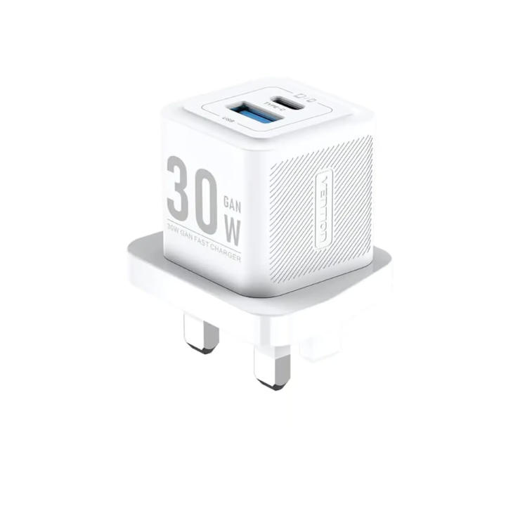 VENTION FEQW0-UK GaN III 30W Fast Wall Charger | 2-Port USB (C + A) | UK Plug | Compact & Safe Charging