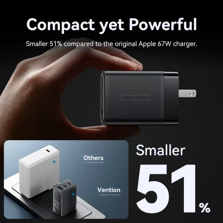 VENTION FERB0-US 65W GaN Charger Foldable 3-Port USB-C & USB-A Fast Charger PD 3.0 & QC 4.0