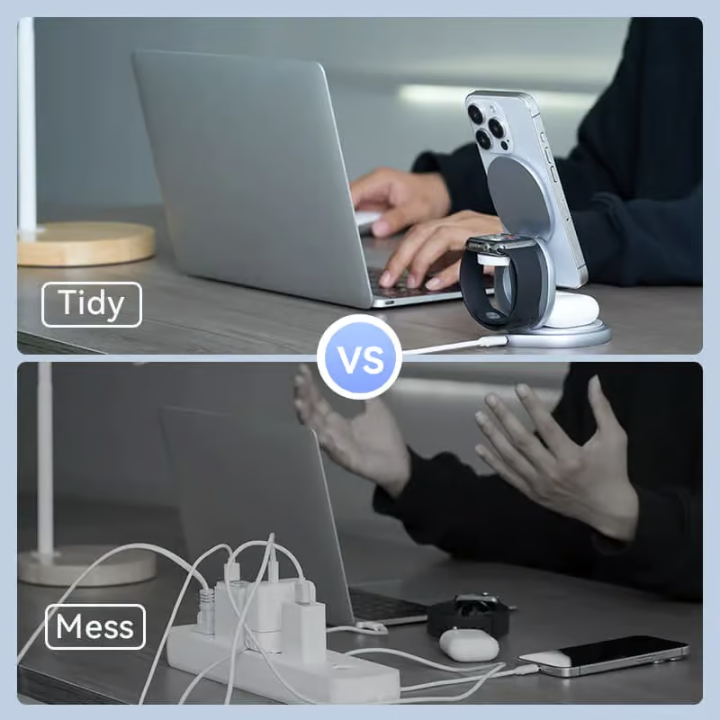 - Fast & Efficient Charging: Supports up to 15W fast wireless charging for iPhones, 2.5W for Apple Watch, and 3W for AirPods, with an 80% charging conversion efficiency.