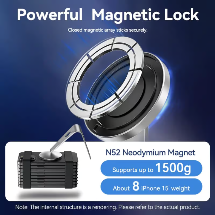 - MagSafe-Compatible 15W Fast Charge: Delivers 15W max for iPhone 12-15 series (10W for Samsung/Android) with precise magnetic alignment—no more misplaced charging.