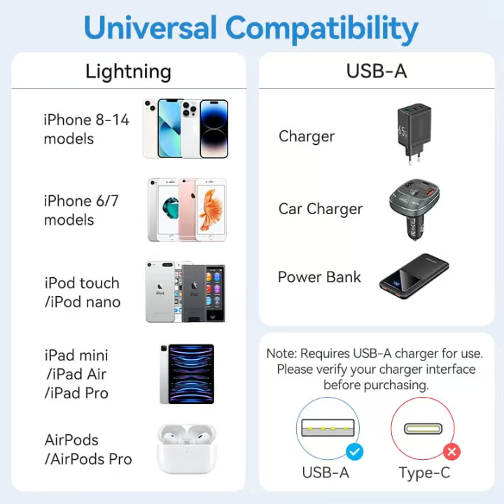 Universal Compatibility: Compatible with all Lightning devices, including iPhone, iPad, and iPod.