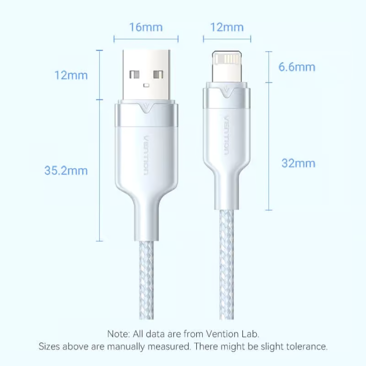 Available in multiple colors (Black, White, Blue, Pink) and lengths (1m, 2m), this cable combines style and functionality. Whether you need a compact cable for on-the-go use or a longer one for home or office, the Vention USB 2.0 Type-A to Lightning cable has you covered.