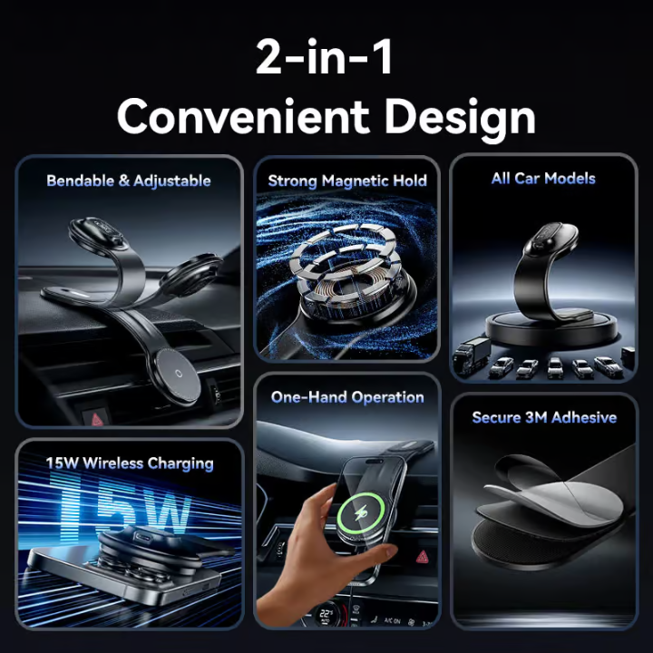 The VENTION KSJB0 Wireless Car Mount Charger combines fast 15W wireless charging with a powerful magnetic grip, so you can focus on the road while your phone stays charged and visible.