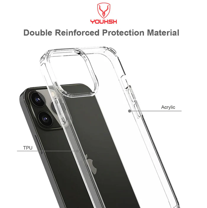 Experience crystal-clear protection with the YOUKSH HD Clear Acrylic Case for iPhone 13 Pro—featuring a rigid anti-yellowing back, reinforced military-grade airbag corners, and a slim, shockproof design.
